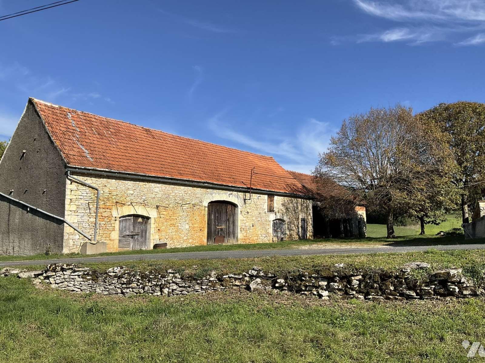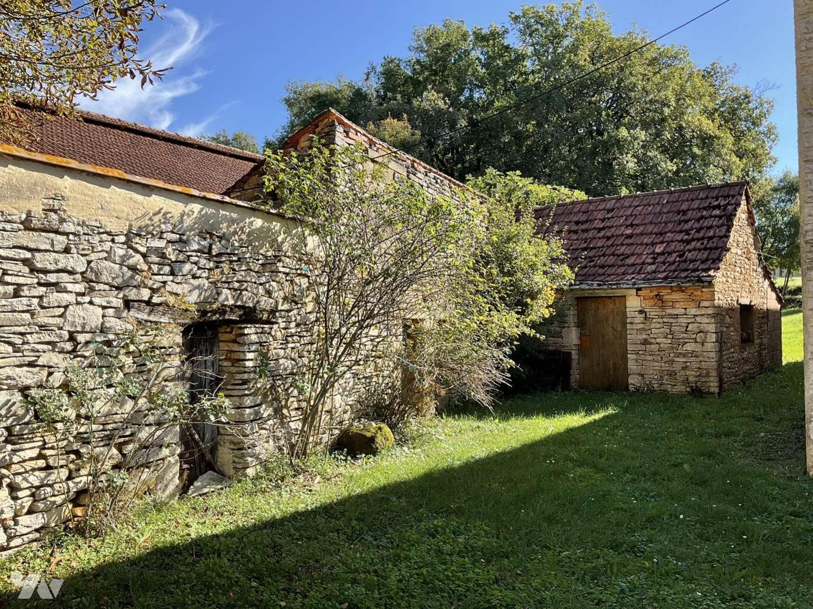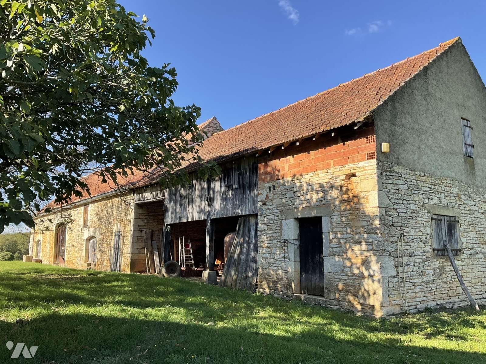 Grange d'environ 144m² avec ancienne bergerie attenant + atelier en pierre + abri ouvert. Gros oeuvre en bon état.